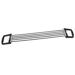 Wielkość oporu w trakcie ćwiczeń uzależniona jest do aktualnie zamontowanej liczby gum na przyrządzie w zakresie od jednej do pięciu. Sam montaż/demontaż pojedynczej gumy jest bardzo prosty i zajmuje dosłownie parę sekund. Całkowita długość ekspandera to około 80 cm (bez rozciągnięcia). Plastikowe uchwyty są wygodne i pewnie leżą w dłoniach. Sprzęt waży zaledwie około 300 gram i zajmuje niewiele miejsca - spokojnie zmieści się do szuflady czy każdej szafki. Sprzęt jest koloru czarnego.