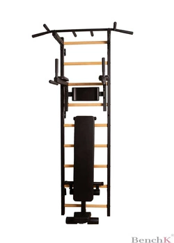 - Drabinka gimnastyczna BenchK z metalowym, regulowanym drążkiem do podciągania z 6-cioma uchwytami, który może służyć również jako uchwyt pod sztangę.
