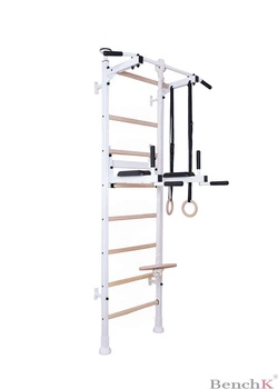 Drabinka gimnastyczna BenchK522W Series 5 to produkt w skład którego wchodzą drabinka z zamontowanym na stałe drążkiem do podciągania i elementy umożliwiające dwa rodzaje montowania - rozporowo do sufitu lub do ściany o grubości powyżej 10cm. Całość wykonana została w Polsce, przy zachowaniu aktualnych, ogólnoeuropejskich norm bezpieczeństwa dotyczących sprzętu gimnastycznego.