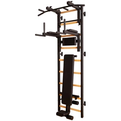 Wielofunkcyjna drabinka o eleganckim designie, która nie zajmuje dużo miejsca. Przyda się do treningu siłowego, wytrzymałościowego czy rozciągania. Dodatki: Regulowany metalowy drążek do podciągania z 6 uchwytami, który może być używany jako uchwyt na sztangę, poręcze do ćwiczeń z podparciem pod plecy, ławka treningowa.