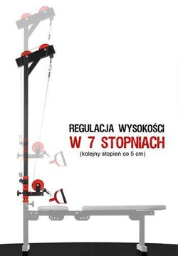 Totalna rewolucja, wzmocniony wyciąg górny i dolny montowany do ławki!|Wyrzeźb POTĘŻNĄ KLATĘ, z wyciągiem którego nie ma nikt inny. Pochwal się innym swoją rzeźbą. Na tym wyciągu ściągniesz 180 KILO. Możesz ćwiczyć grzbiet jak na maszynie w profesjonalnym klubie. Wyciągów i atlasów jest dużo ale tylko my proponujemy Ci pewny i sprawdzony przez AWF sprzęt.|Jedyny na rynku wyciąg do domu z profilu 80x60x2 mm|Do jego produkcji użyliśmy profilu 80x60 o grubości 2 mm, pierwszej kategorii z atestem, który stosujemy w produkcji sprzętów z linii profesjonalnej. Żadna inna firma nie stosuje w produkcji sprzętów do domowych siłowni tak potężnego profilu. A to wszystko po to, aby dać Ci gwarancję, że nasz sprzęt nie złamie się jak inne tańsze wyciągi. Dzięki tak niezawodnej konstrukcji możesz z tym wyciągiem robić SUPER SERIE z MEGA obciążeniem. Ten wyciąg wytrzyma 200 KILO.|2 sposoby treningu na wyciągu górny i dolny|Z tym wyciągiem możesz trenować na 2 sposoby: ściągając drążek na wyciągu górnym lub ćwiczyć grzbiet na wyciągu dolnym. Zmiana z wyciągu górnego na dolny jest bardzo szybka, wystarczy że przepniesz linkę na karabinku i gotowe. Nie musisz nić odkręcać i demontować. Dzięki grubej, stabilnej podporze na stopy będziesz mógł wygodnie przyciągać linkę wyciągu dolnego.|Pewnie myślisz, że zaoszczędziliśmy na kółkach?|Nie, nigdy nie tniemy kosztów na Twoim bezpieczeństwie. W Twoim wyciągu do ławki zamontowaliśmy grube, plastikowe, solidne ze stalowymi łożyskami kółka, wykonane według naszego projektu. Zapewnią Ci sprawne i ciche działanie wyciągu podczas ćwiczeń. Głębokie rowki sprawiają, że linka dobrze się prowadzi i nie wypada z kółka.|Kelton wyciąg HZ15 idealnie sprawdzi się, jeśli masz jedną z ławek z serii Kelton Tryton, Spartan, Hunter lub Hyperion|Wystarczy dołożyć do niej wyciąg i już możesz zacząć ściągać ciężary do karku lub klaty. Przywiązujemy wagę, by nie tylko na naszych najdroższych sprzętach ćwiczyło Ci się wygodnie, komfortowo i bezpiecznie. Element montażowy wyciągu pasuje do profilu 50x50x2 mm.|A co z obciążeniem?|System nakładania ciężarów, skonstruowaliśmy z pręta o średnicy 25 mm, możesz zamontować na nim ciężary z dokładnością, co do 1 kg. Dzięki temu masz możliwość dobrania obciążenia idealnie do swoich potrzeb i stopnia zaawansowania w ćwiczeniach.|Ciężar mocno dokręcisz i przez to odpowiednio zabezpieczysz dwoma zaciskami śrubowymi fi 28 mm ze stali ocynkowanej. To rozwiązanie da Ci 100% poczucia bezpieczeństwa podczas treningu. (*)|* Na dzień dzisiejszy produkt sprzedawany jest bez dodawanych gratis zacisków śrubowych fi 28 mm.|System regulacji wysokości|Wyciąg idealnie dobierzesz do swojego wzrostu, dzięki 7 stopniowej regulacji wysokości. Masz do wyboru ustawienie co 5 cm. Zmiany dokonasz bardzo szybo, wystarczy odkręcić duże pokrętło blokujące Kelton, przesunąć wyciąg, zblokować prętem blokującym, dokręcić i gotowe. Możesz zaczynać ściągać drążek wyciągu do klaty lub do karku.|Tulejki mocujące|Nie musisz już obawiać się o to, że jak weźmiesz za duży ciężar to linka wyciągu wyślizgnie się z zacisków. System mocowania linki wykonaliśmy z tulejki zakręcanej na 2 imbusy, przez co na pewno nie oberwiesz drążkiem w trakcie ćwiczenia.|Dodatkowo w systemie mocowania drążka zamontowaliśmy grubą, gumową kulę z metalową nakładką, która amortyzuje drążek i zapobiega jego obijaniu o górną belkę wyciągu.|Na tym wyciągu nie musisz ćwiczyć tylko drążkiem długim HD3 możesz wymieniać drążki w prosty i szybki sposób, co daje Ci możliwość ćwiczenia nieograniczonej gamy mięśni.|Dokup tuleję na obciążenie fi 50 mm|Z wyciągiem Kelton HEAVY HZ15 wyrzeźbisz mięśnie, które płeć przeciwna będzie pożerać spojrzeniem. To idealne rozwiązanie do Twojej domowej siłki. Z tym wyciągiem zrobisz z ławki wyciąg górny i dolny. Zacznij trening już teraz.||Gabaryty 37 cm x 180 cm x 110 cm|(długość x wysokość x szerokość)|Waga 12 kg|Testowana wytrzymałość 180 kg|Profil konstrukcyjny 80x60x2 mm i 40x40x2 mm|Szerokość z drążkiem długim HD3 110 cm|Regulacja wysokości 7 stopni (kolejny stopień co 5 cm)|Długość pręta na obciążenie 50 cm|Średnica pręta na obciążenie 25 mm|Minimalna średnica pasującego ciężaru 26 mm|Zabezpieczenie ciężaru dwa stalowe zaciski śrubowe fi 28 mm (Na dzień dzisiejszy produkt sprzedawany jest bez dodawanych gratis zacisków śrubowych fi 28 mm.)|Kółka: Plastikowe ze stalowymi łożyskami i głębokim rowkiem na linkę|Linka: 4mm PCV|Mocowanie drążka karabinek 6 mm|Zakres ruchu 135 cm|Drążki w komplecie ||- drążek długi HD3 gratis|Można zamontować do: - ławek z linii Kelton HOME i HEAVY (seria Tryton, Spartan, Hunter i Hyperion)|- atlasów z linii Kelton HOME i HEAVY (seria Python, Gladius)|* do montażu dodatkowych akcesoriów niezbędny jest zestaw, w skład którego wchodzi: pokrętło, przelotka, bolec.||Dimensions 37 cm x 180 cm x 110 cm|(length x height x width)|Weight 12 kg|Tested strength 180 kg|Constructional profile 80x60x2 mm and 40x40x2 mm|Width with the HD3 long bar 110 cm|Height adjustment 7 levels (every 5 cm)|Length of the load bar 50 cm|Diameter of the load bar 25 mm|Minimum diameter of a suitable weight 26 mm|Weight protection two steel screw clamps of 28 mm in diameter (currently the product is sold without free screw clamps of 28 mm in diameter.)|Wheels: Plastic with steel bearings and a deep groove for the cord|Line: 4mm PCV|Bar attachment snap-hook 6 mm|Movement range 135 cm|Bars in the kit ||- HD3 long bar free-of-charge|May be added to: - benches from the Kelton HOME and HEAVY lines (Tryton, Spartan, Hunter and Hyperion series)|- exercise towers from the Kelton HOME and HEAVY lines (Python, Gladius series)|* For assembly of additional accessories, you