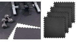 - Antypoślizgowa mata EVA w formie puzzli. Chroni podłogę, tłumi hałas i zwiększa komfort ćwiczeń. Zestaw zawiera 4 elementy 59×59 cm i 8 listew brzegowych.
