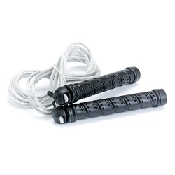 Wykonana z powlekanej linki stalowej, plastikowe rączki pokryte pianką dodatkowo obciążone, łożyskowana. Przeznaczona do treningów.