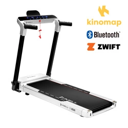 Bieżnia BE8501i wyróżnia się na tle innych urządzeń możliwością połączenia z aplikacjami ZWIFT i Kinomap, które zapewniają interaktywne treningi oraz śledzenie postępów na smartfonie lub tablecie. Dzięki modułowi Bluetooth i portowi USB możesz odtwarzać ulubioną muzykę lub podcasty bezpośrednio z urządzenia mobilnego. Wbudowany głośnik sprawia, że każdy trening staje się przyjemnością – możesz biegać przy dźwiękach motywujących utworów lub brać udział w wirtualnych wyzwaniach.