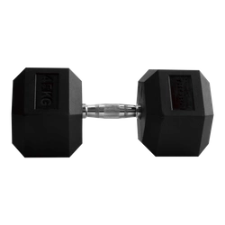 Samoistne przemieszczanie się hantli jest zredukowane dzięki zastosowaniu heksagonalnego kształtu. Chromowane rękojeści zostały zaprojektowane w sposób zapewniający pewny i komfortowy chwyt.