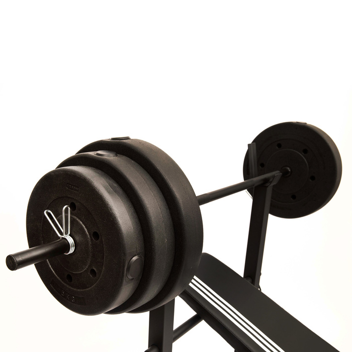 Na każdym talerzu umieszczona została informacja o wadze. Dzięki temu szybko znajdziesz obciążenia o odpowiednim ciężarze.