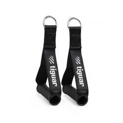 Uchwyty do wyciągu tiguar wykonane są z plecionej taśmy z Terylene, która odznacza się wyjątkową wytrzymałością na rozciąganie i odpornością na przetarcia. Część chwytna wykonana jest z gumowego uchwytu TPR, który zapewnia pewny, antypoślizgowy chwyt i wysoki komfort użytkowania podczas intensywnych treningów.