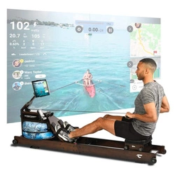 Ergometr Christopeit Hudson to solidna maszyna do wioślarstwa, wykonana z drewna bambusowego. Jej innowacyjny system oporu, który wykorzystuje wodę, symuluje autentyczny trening wioślarski, łagodny dla stawów.